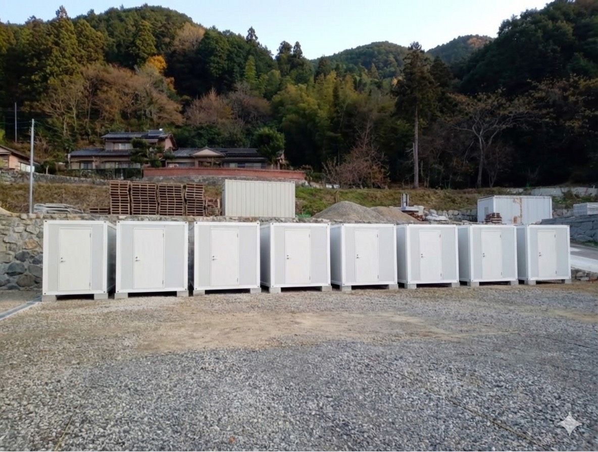 参考目安:国内運搬費(福岡県内)約70,000円/1台、組み立て費用 48,000円/1台、基礎工事(ブロック上乗せ)56,000円/1台